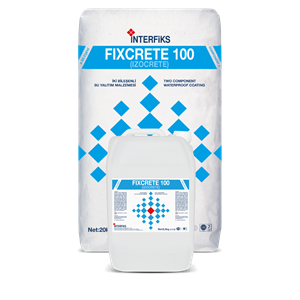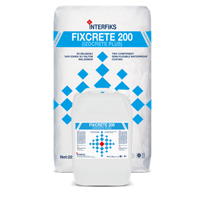 FIXCRETE 200 iki bileşenli, çimento bazlı ve akrilik emülsiyon esaslı, beton ve çimento esaslı yüzeylerde su geçirimsiz katman oluşturan esnek su yalıtım malzemesidir.
